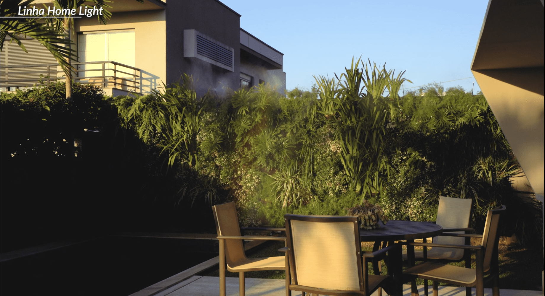 Toque extra de frescor: Em projetos específicos, também instalamos um “Fogger”. Esse sistema cria uma névoa fina de água, ideal para a lavagem das folhas e para a regulagem da umidade, proporcionando um ambiente ainda mais propício para certas espécies vegetais. E para garantir a sustentabilidade, instalamos as calhas coletoras, que conduzem a água excedente para um ponto de coleta específico, minimizando o desperdício.